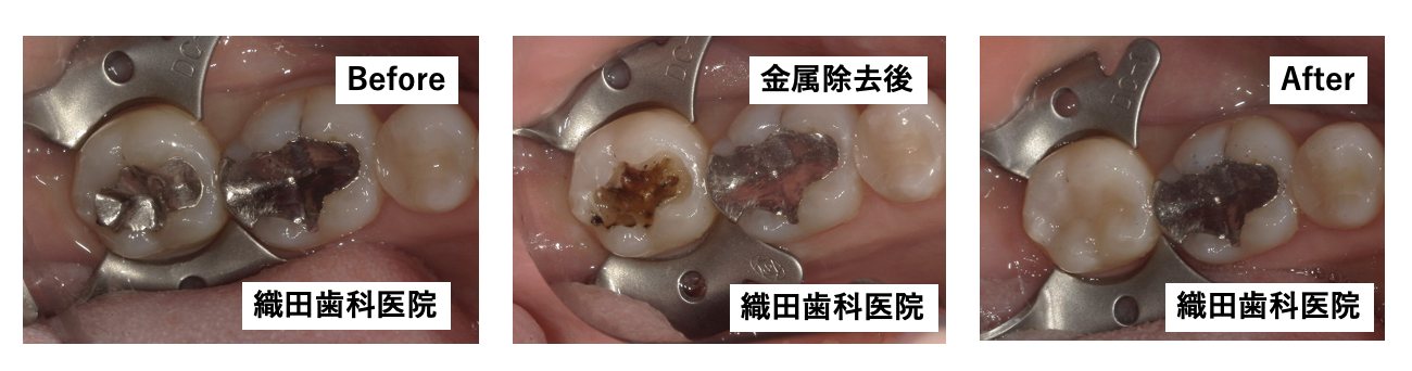 また、金属の下でむし歯が広がっているケースもあるため、まずは丁寧な診査を行いました。