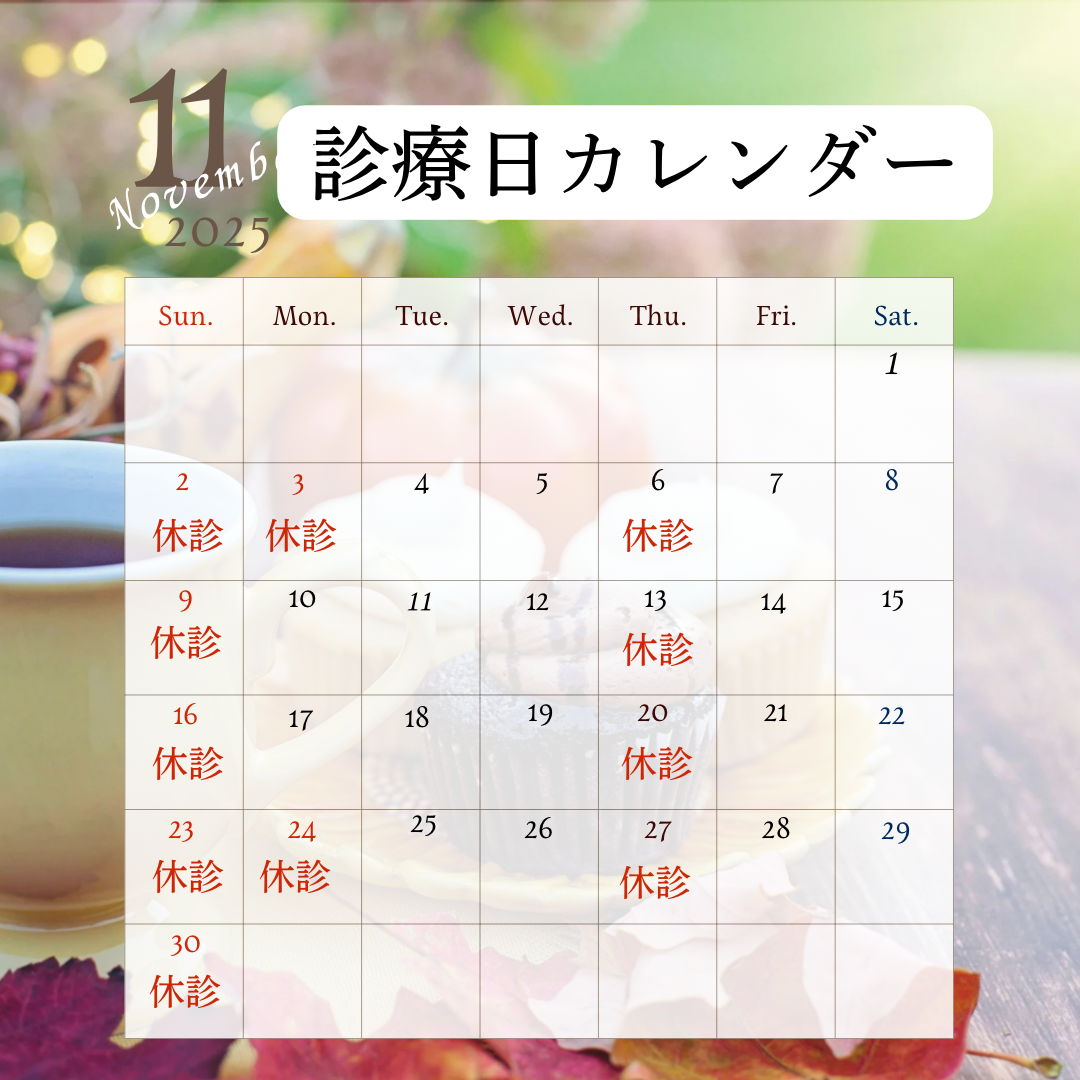 ・木曜・日曜・祝日は休診(ただし11/24は診療)