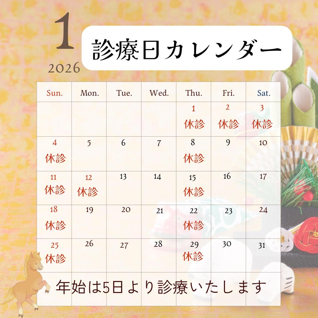 2026年1月は、診療日カレンダーのとおり診療を行っております。